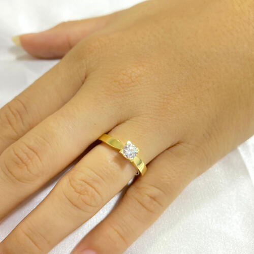 Anel Ouro 18k Solitário Zircônia Redonda