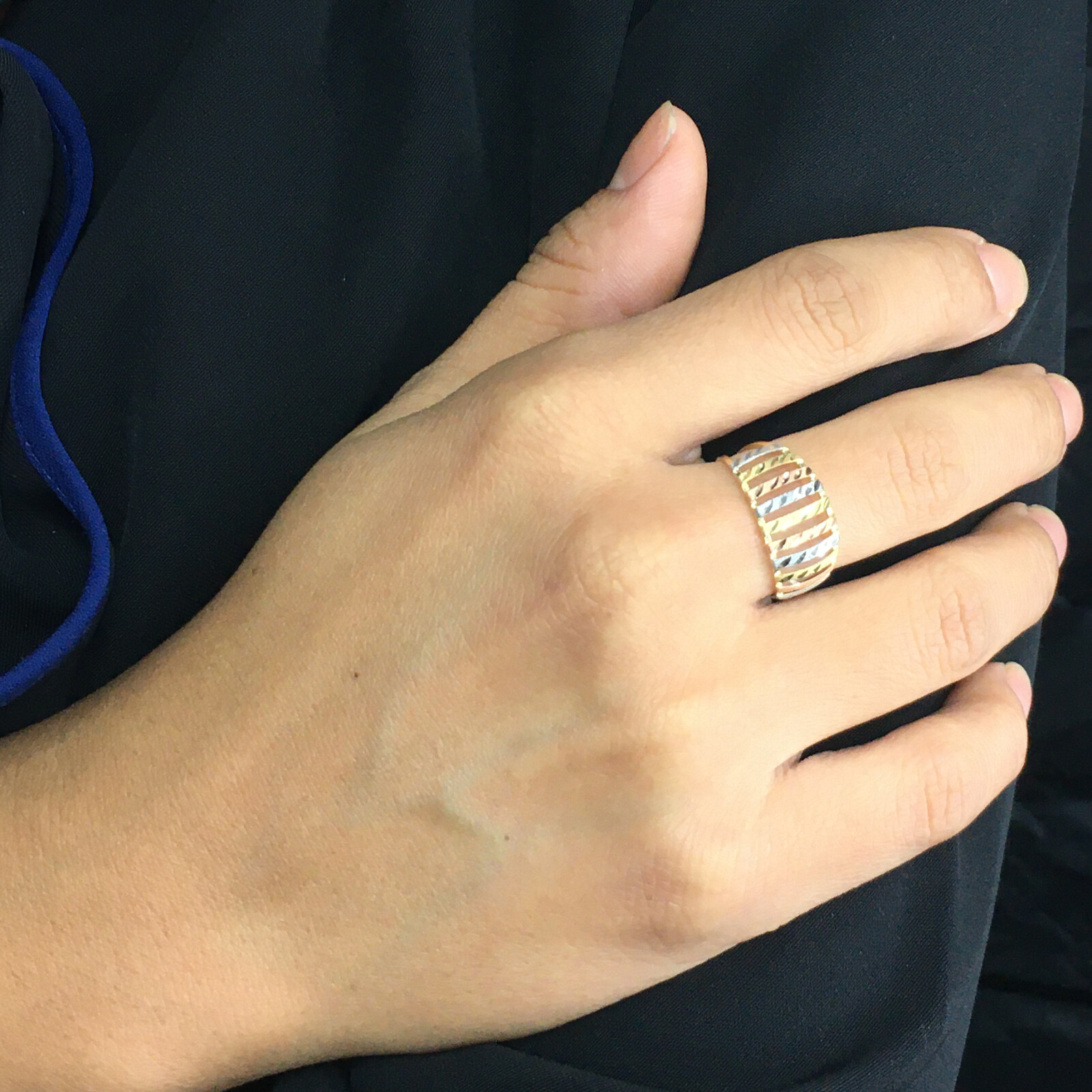 Anel Ouro 18k Três Cores com Listras