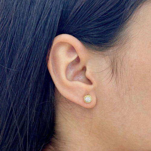 Brinco Ouro 18k Redondo com Zircônias